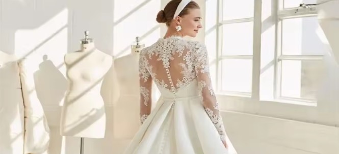 Long-sleeved A-line wedding dress Editha with tattoo lace