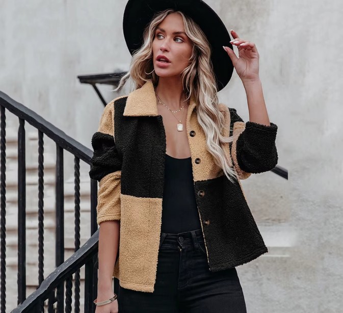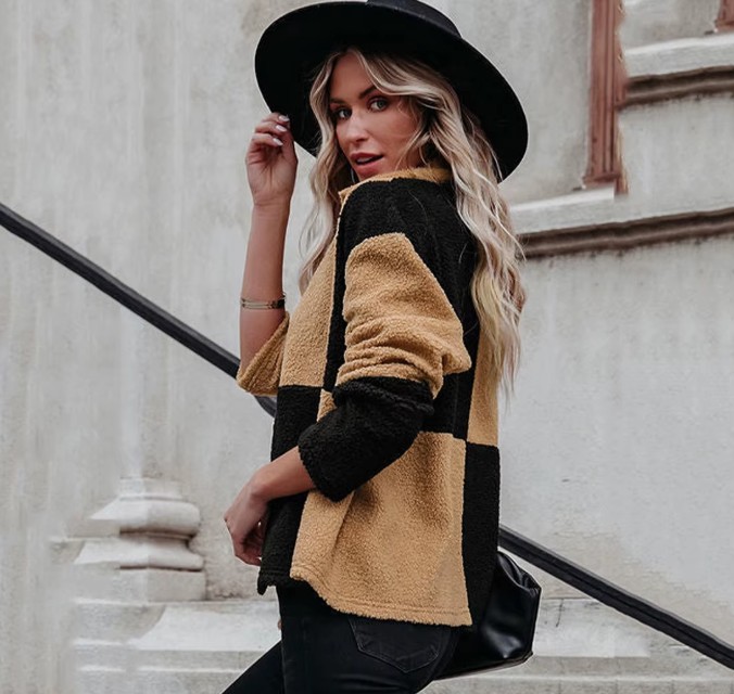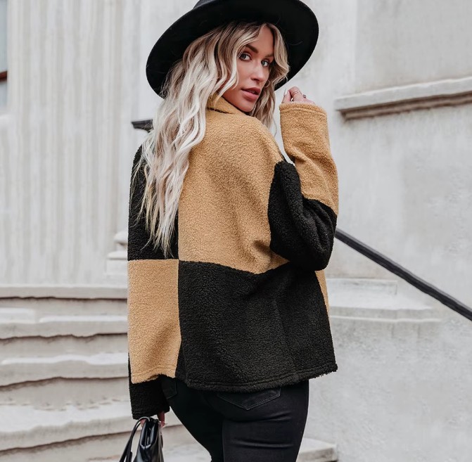 Damen Wolljacke Pullover mit Farbblock-Motiv Gelb Schwarz