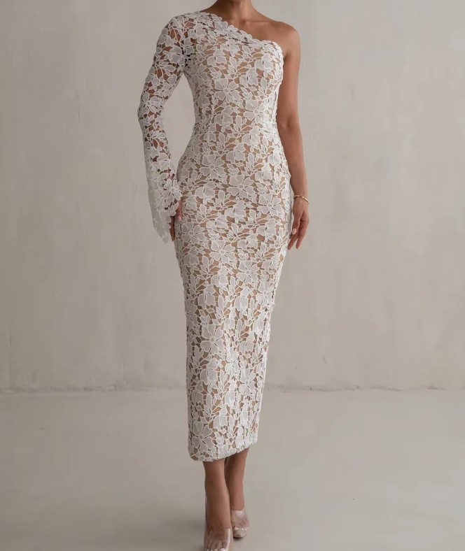 I-line one-shoulder civil wedding dress Jenna made of lace