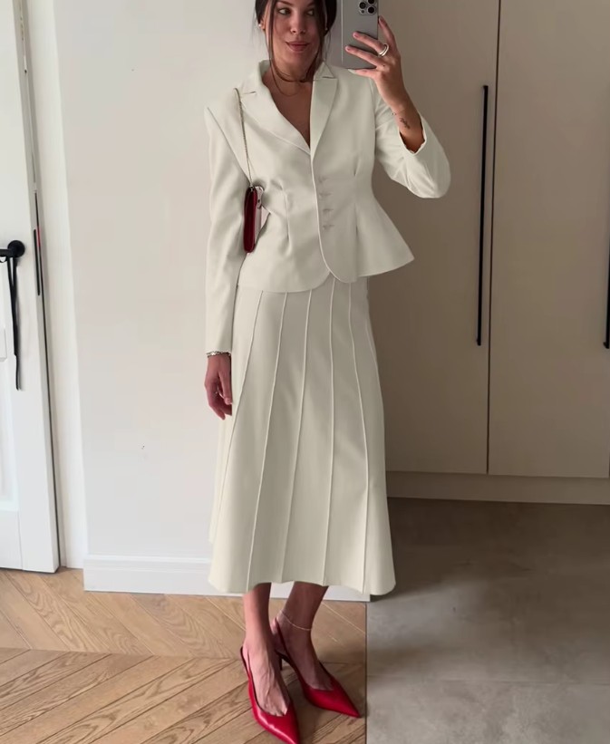 A-Linie Damen Kostüm für die Braut Joyce Wadenlang in Weiß