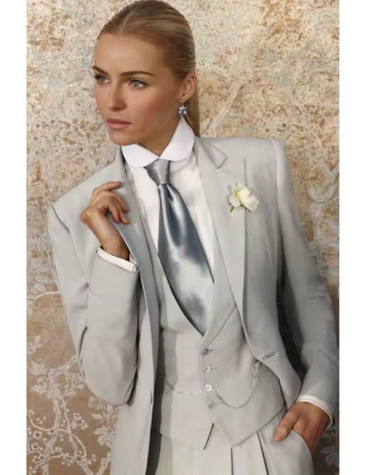 Braut Hosenanzug Janna für den Standesamt Dreiteilig in Silbergrau