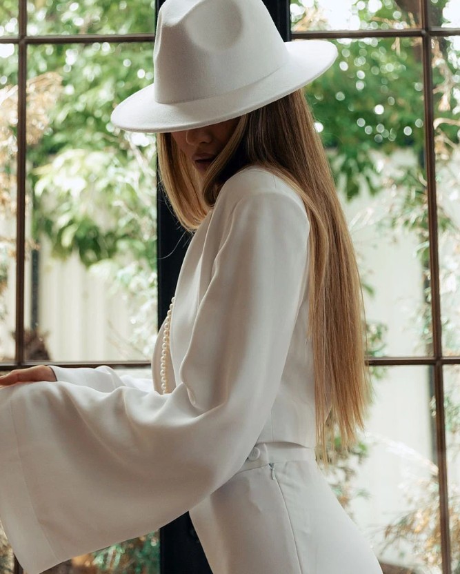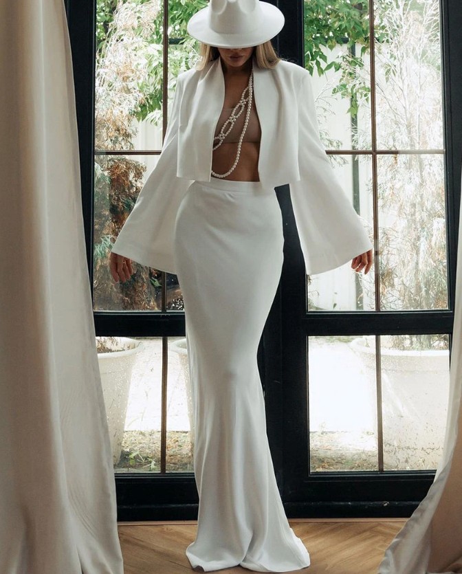 Braut Zweiteiler Outfit Jocelyne für den Standesamt Lang in Weiß