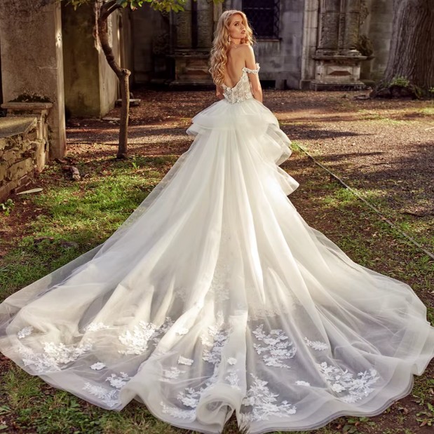 Meerjungfrau Brautkleid Evi mit Blumen Kristall Applikationen Schleppe Abnehmbar
