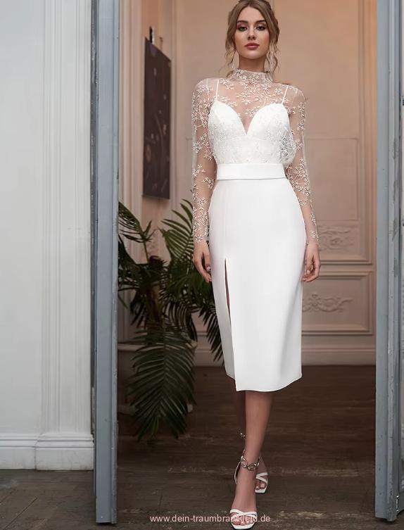 Spaghettiträger Bleistift Etui Standesamtkleid Wadenlang mit Bolero Jacke