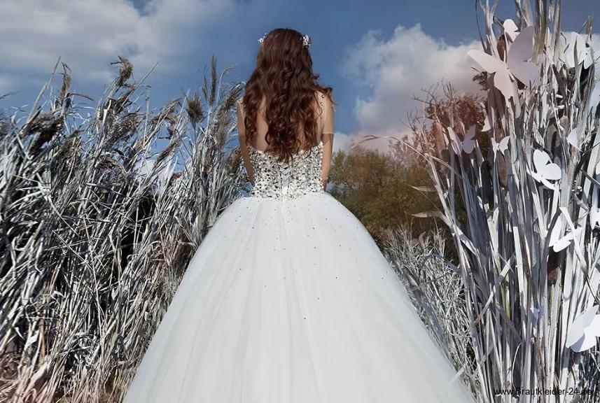 A Linie Glitzer Brautkleid Enissa mit Kristall Tüll Applikationen Bodenlang