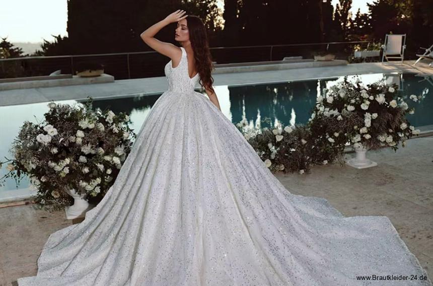 Ball Linie Brautkleid Euphemia mit Herz Ausschnitt Perlen Pailletten und Schleppe