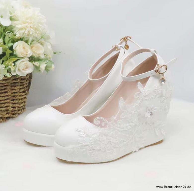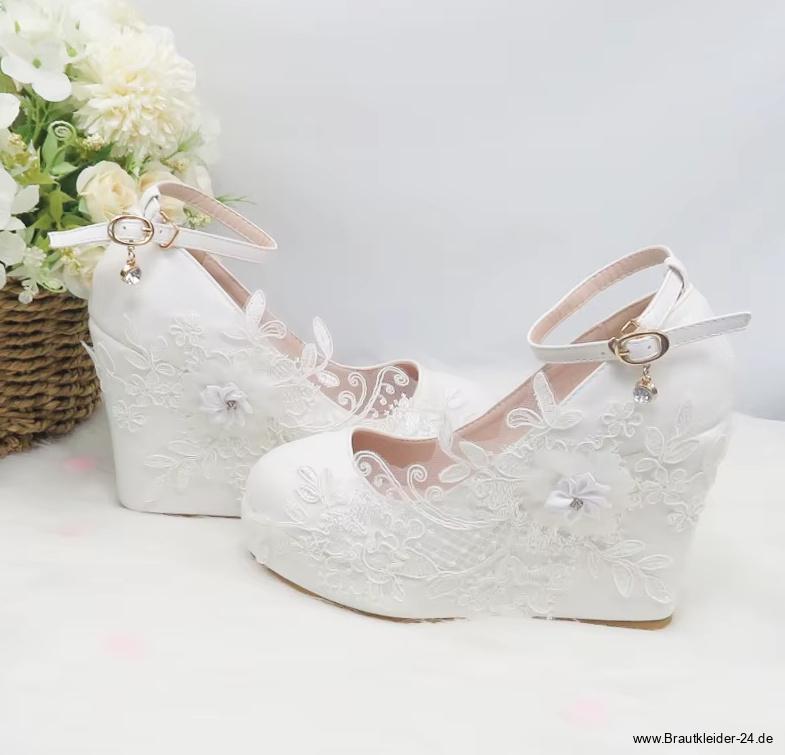 Keilabsatz Brautschuhe Estelle Knöchelriemen und Spitze