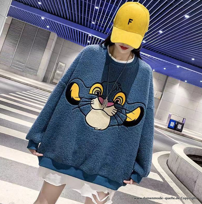 König der Löwen Cartoon Print Damen Plüsch Sweater