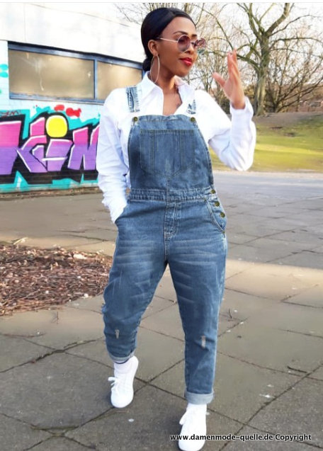 Ripped Denim Overalls Women’s Jeans Dungarees