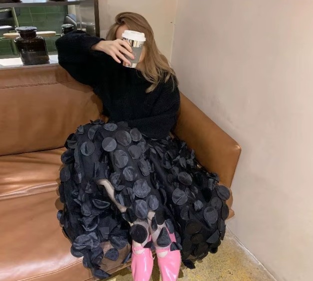 A Linie Polka Dot Maxi Rock Knöchellang in Schwarz