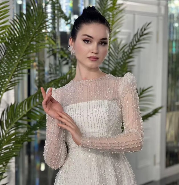 A Linie Brautkleid Jara mit Ärmel und Illusion Ausschnitt