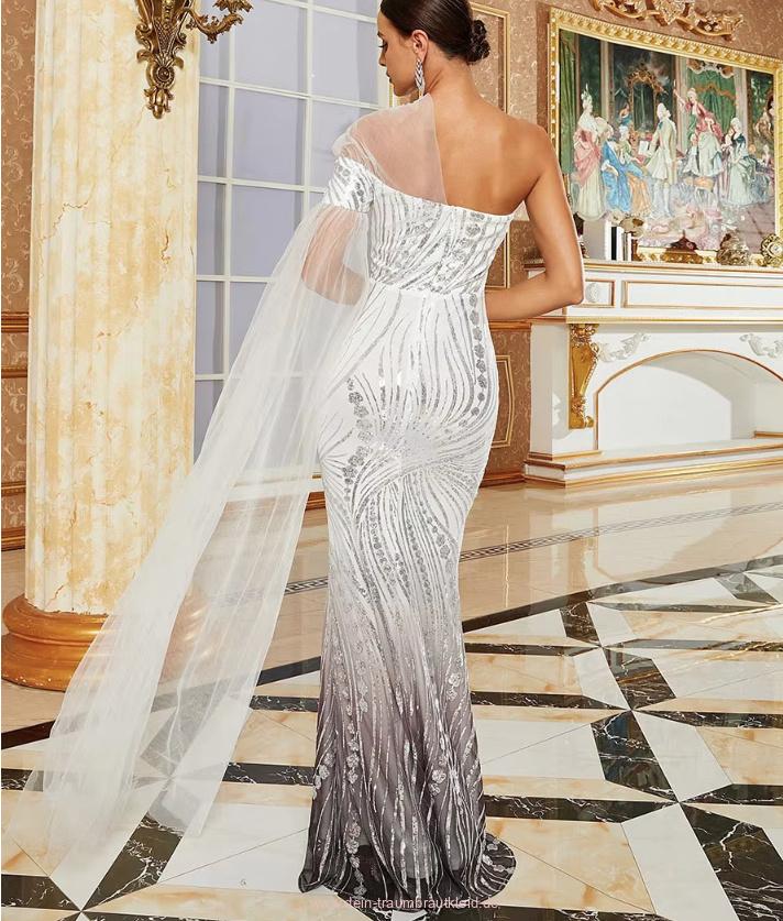 One Shoulder Bleistift Pailletten Standesamtkleid Bodenlang GradiertArt: Modern – Sexy
