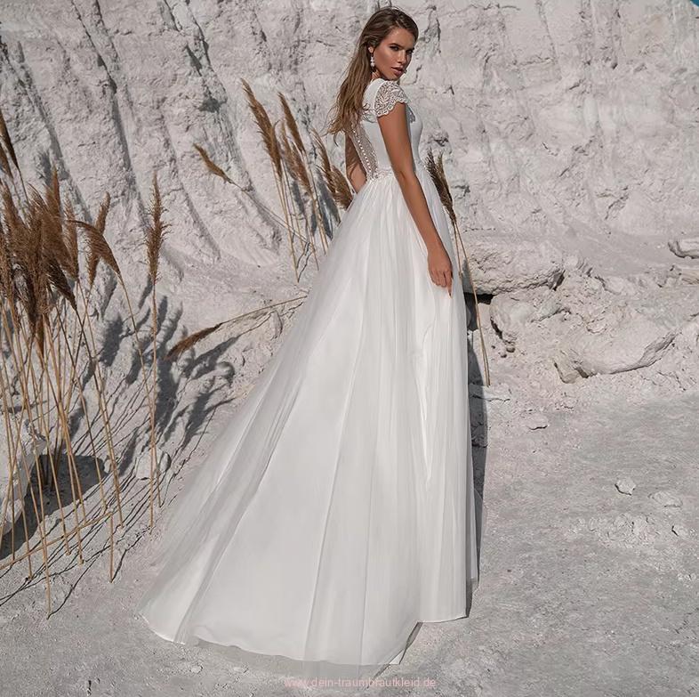 A-line short-sleeved wedding dress Cinzia Simple with sash