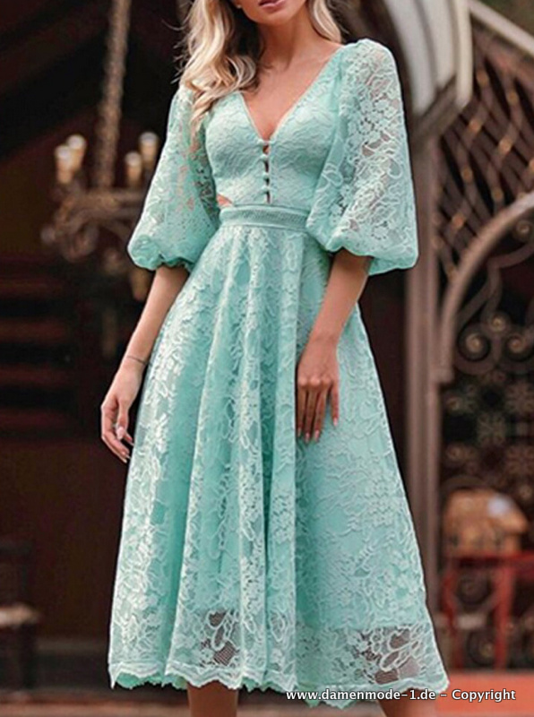 A Linie Sommerkleid Elegant aus Spitze Wadenlang Hellgrün