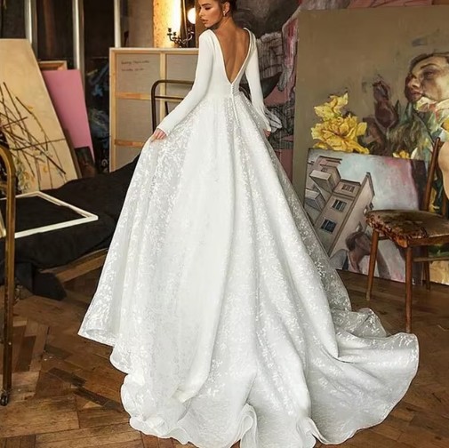 Long-sleeved A-line wedding dress Elisabet with back cutout and lace appliqués