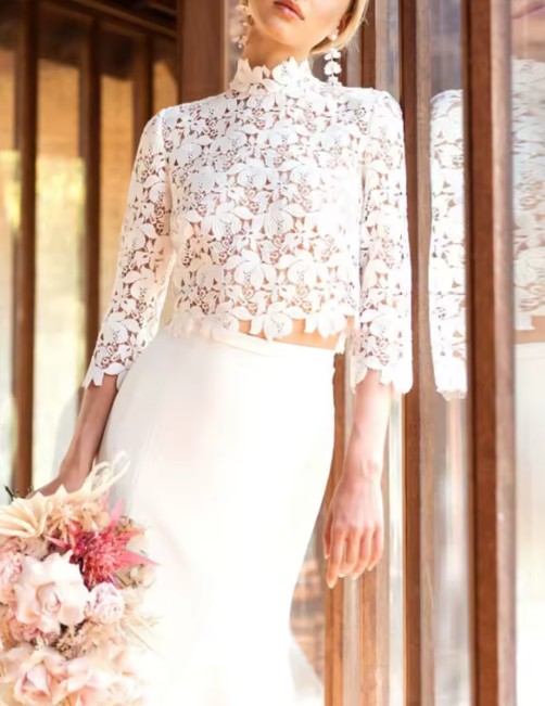 Long-sleeved bridal bolero jacket Esmeralda made of lace
