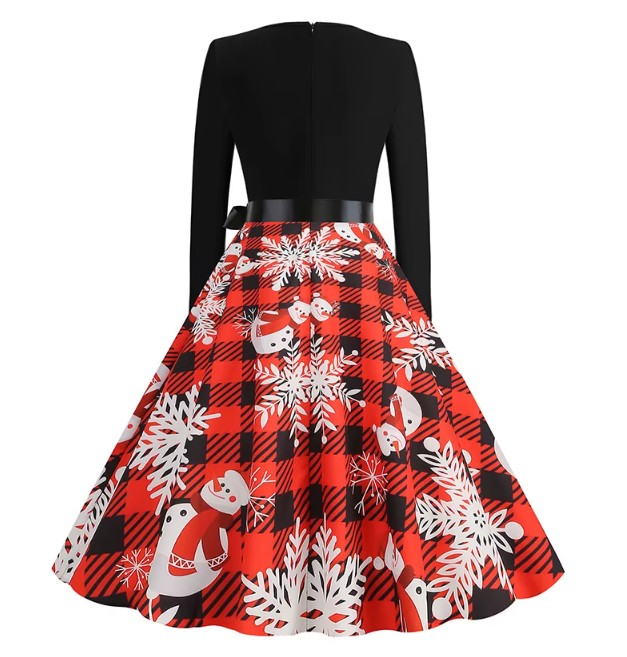 Langarm Vintage-Weihnachtskleid Enna Schwarz Rot mit Motive