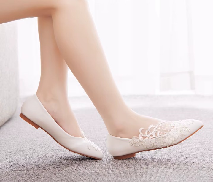 Braut Ballerina Eika Flache Hochzeitsschuhe mit Spitze