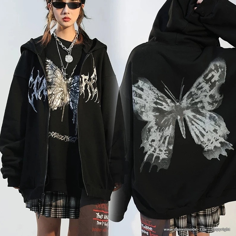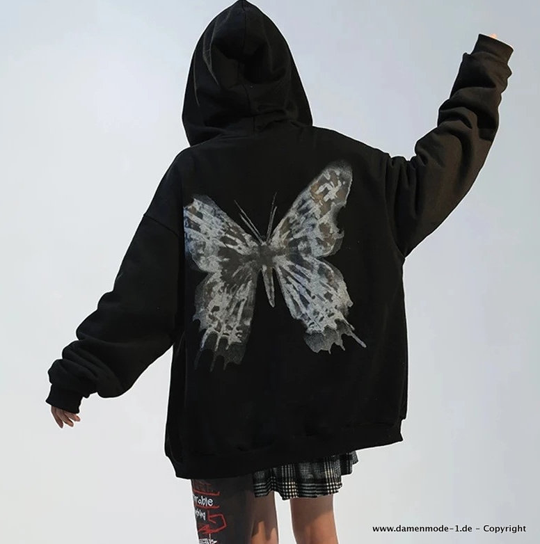 Oversize Zipper Hoodie Pullover mit Schmetterling Print
