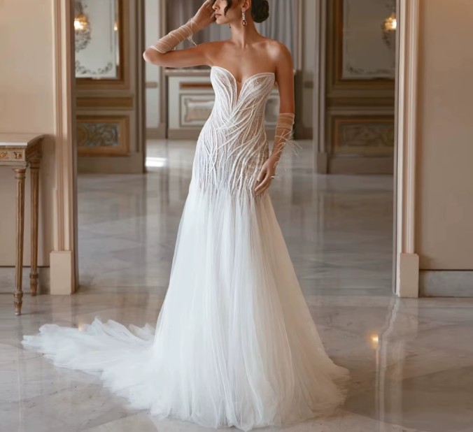 Schulterfreies Fit and Flare Brautkleid Jula mit Bolero Jacke