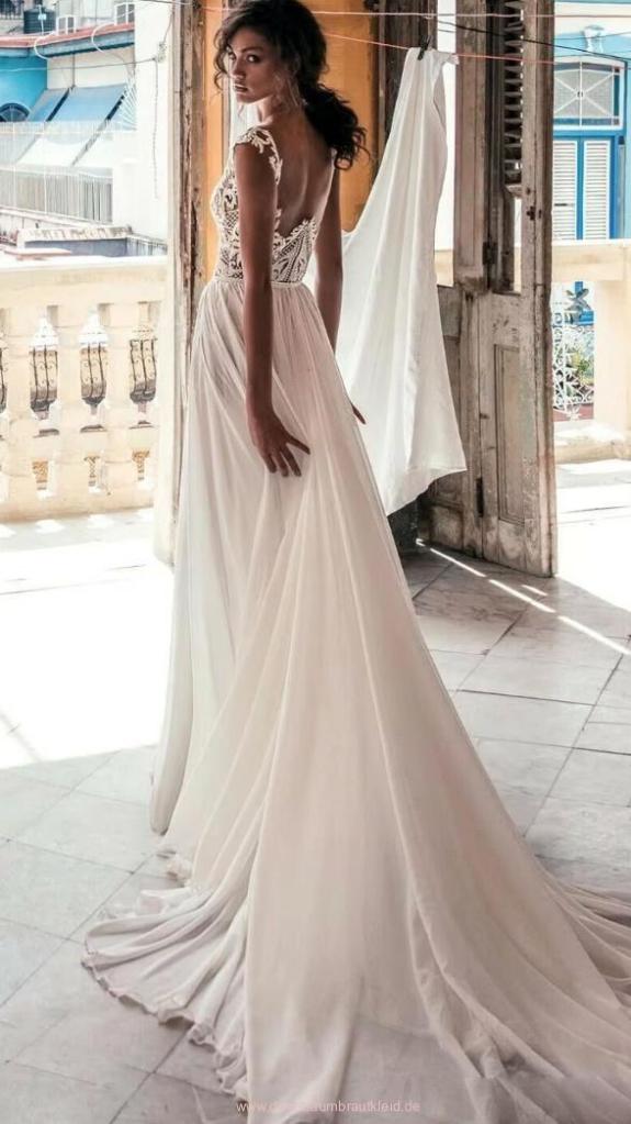 A Linie Boho Chiffon Brautkleid Chris mit Sexy Schlitz Spitze und V Ausschnitt