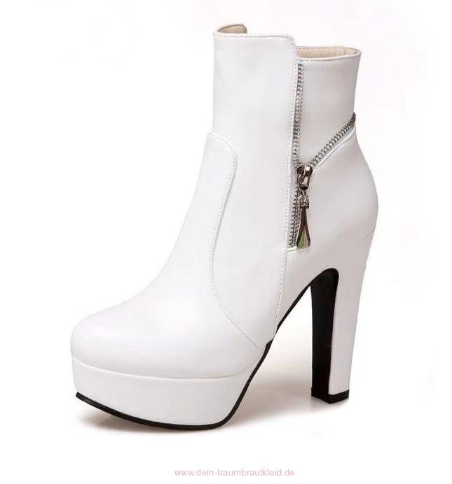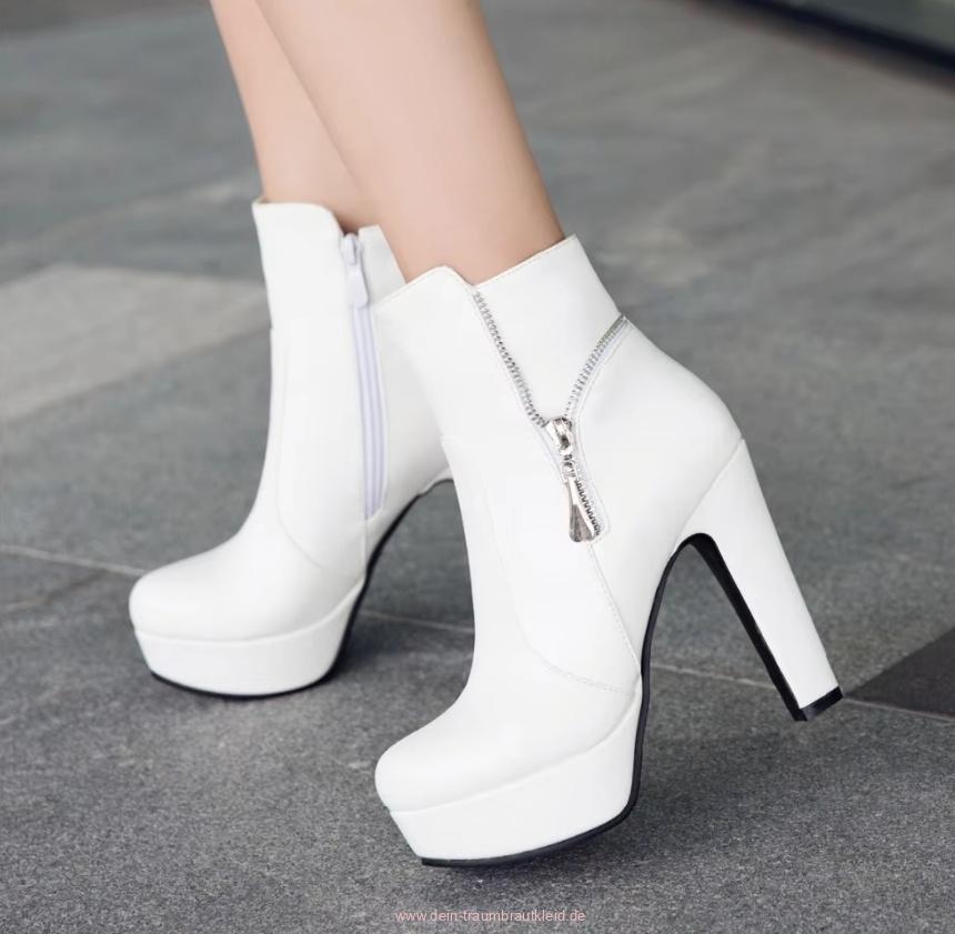 Plateau Braut Stiefeletten Hochzeitsschuhe Edeltraud in Weiß mit Reißverschluss