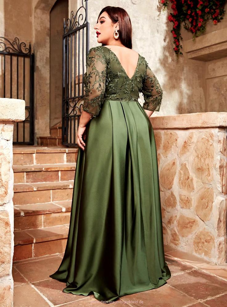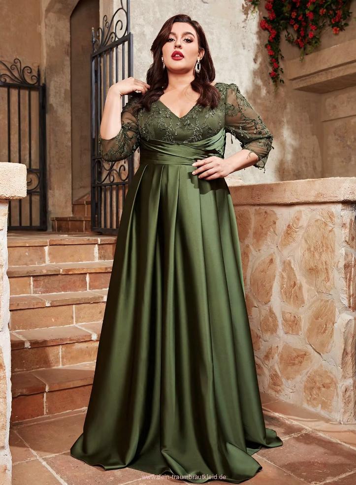 A Linie Empire Kleid Elegant für Hochzeitsgäste in Grün mit Ärmeln aus Spitze