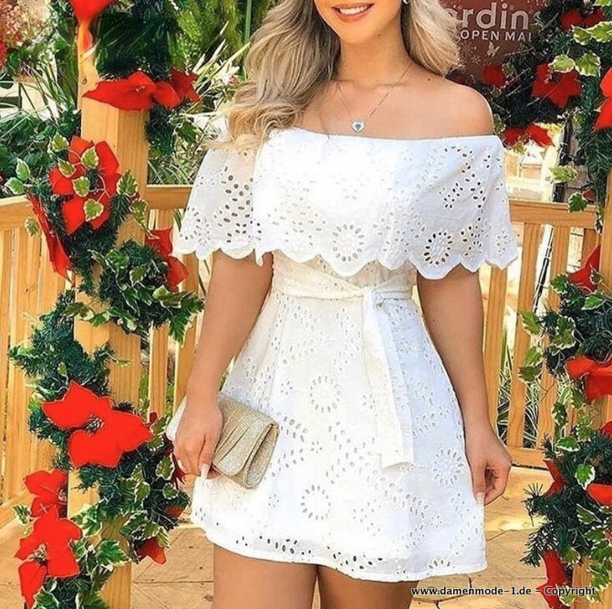 Kurzes Mini Sommer Kleid Elegant in Weiß Schulterfrei