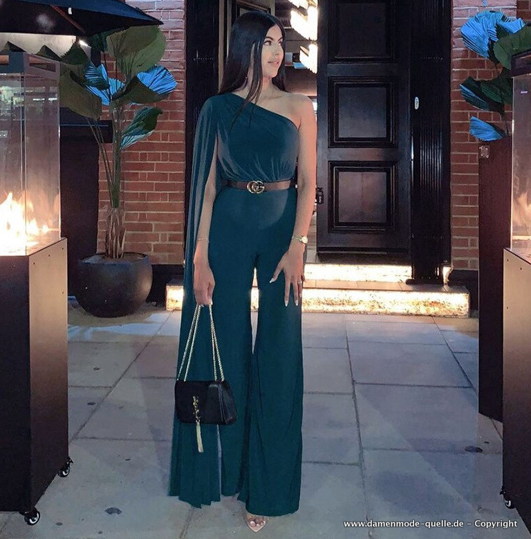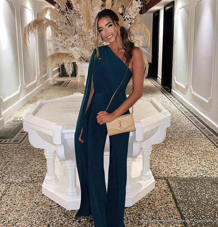 One Shoulder Jumpsuit Einteiler Overall Lang in Blau Elegant