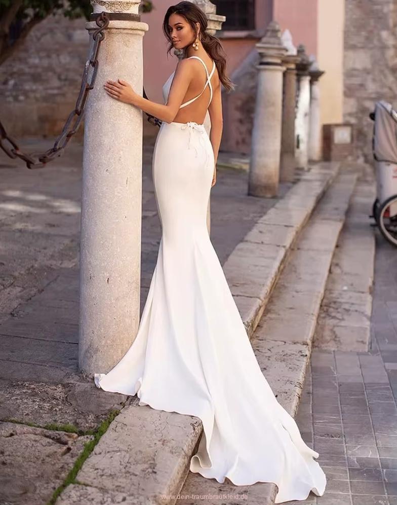 Sexy cut-out fit and flare clean chic bridal dress Evita with V-neck and train