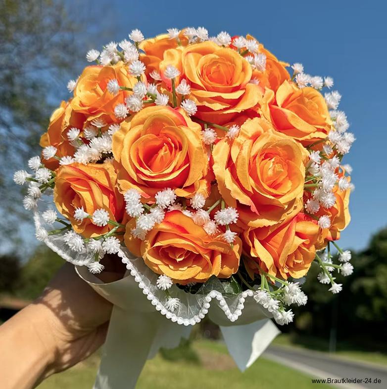 Braut Blumenstrauß Evita Rund in Orange mit Rosen