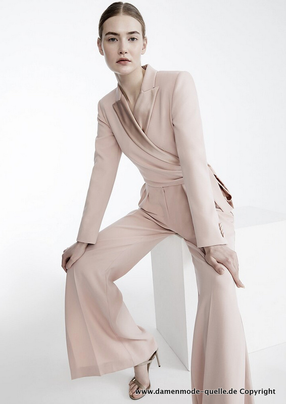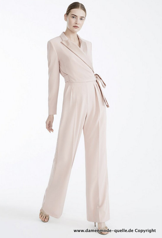 Elegantes Langarm Overall Jumpsuit in Beige Creme Champagne