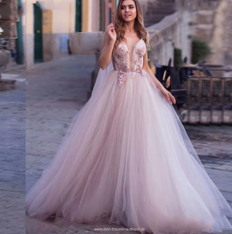 Robe De Mariage A Line Tüll Brautkleid Ester mit Blumen