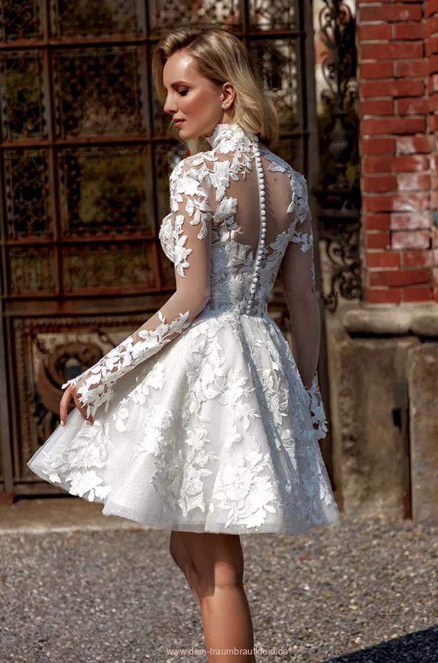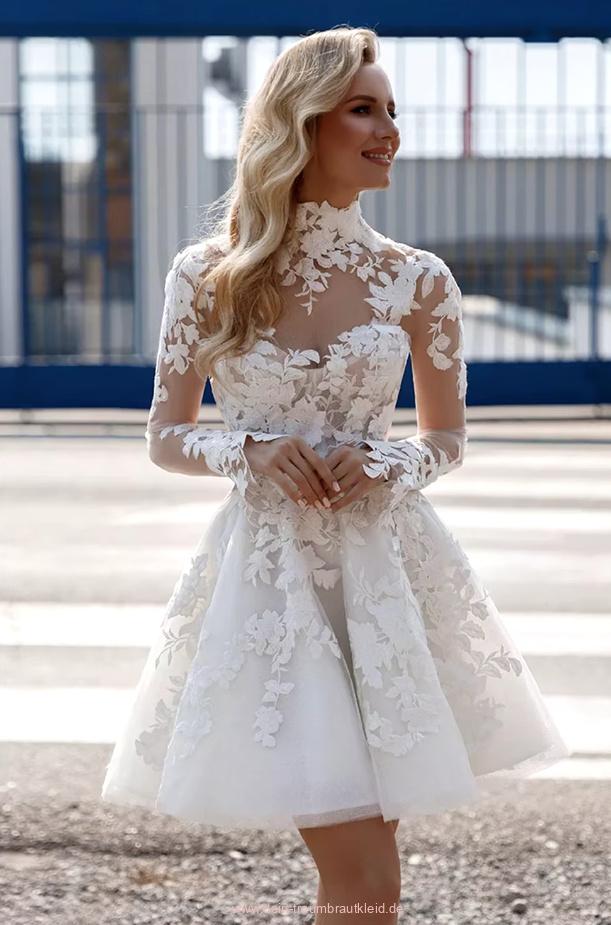 A Linie Langarm Brautkleid Brietta Kurz mit Spitze