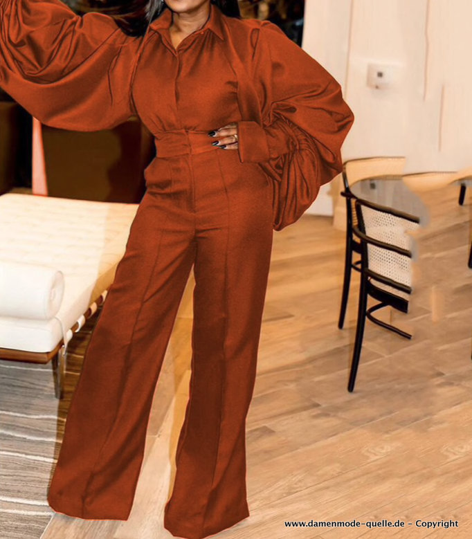 Eleganter Langer Jumpsuit Einteiler in Bronze mit Laternenärmel