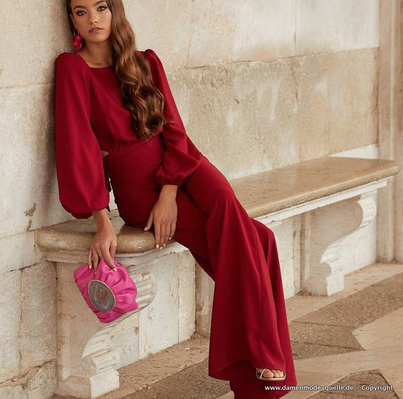 Chiffon Onepice Overall Playsuit Elegant mit Sexy Rückenausschnitt in Rot