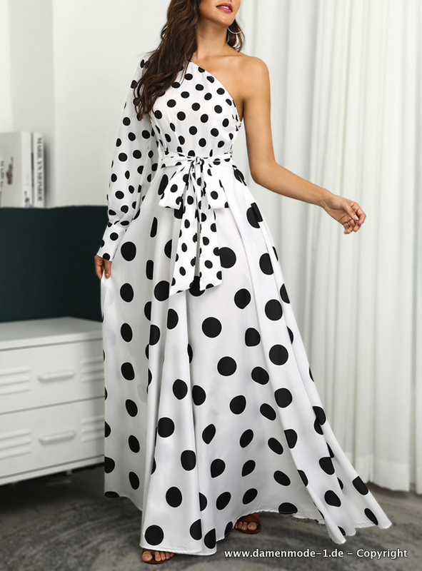 One Shoulder Maxi Kleid in Weiß Elegant Gepunktet r