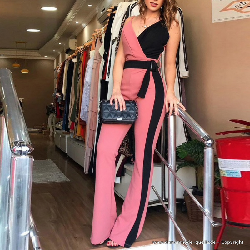 Spaghetti Träger Jumpsuit Einteiler Overall Lang in Rosa Schwarz