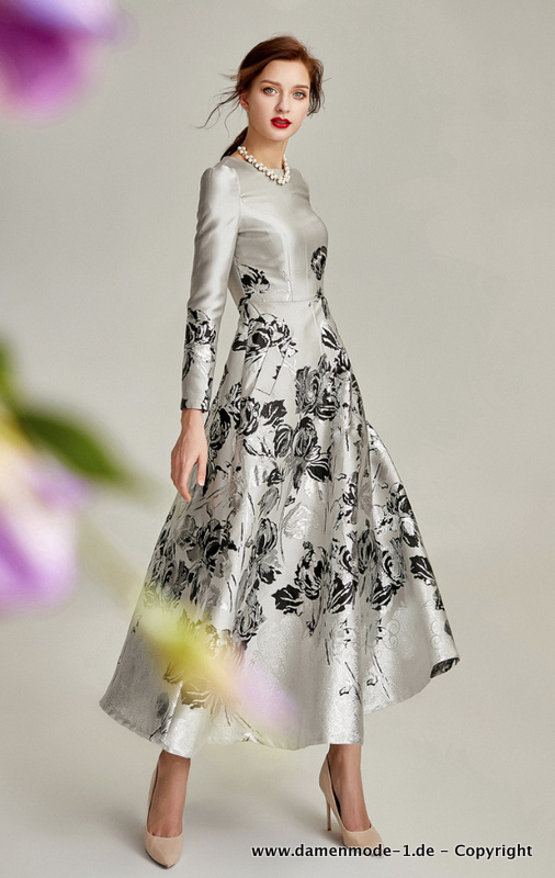 A Linie Satin Kleid Elegant in Silber mit Blumen Muster Lang