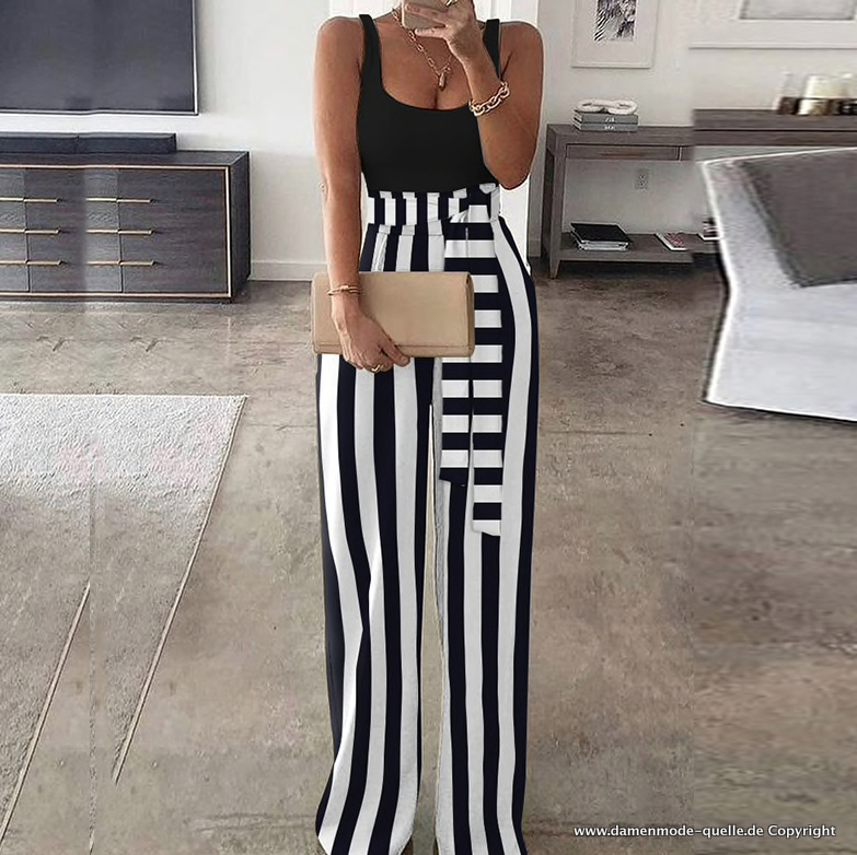 Sommer Jumpsuit Overall Einteiler Elegant in Schwarz Weiß