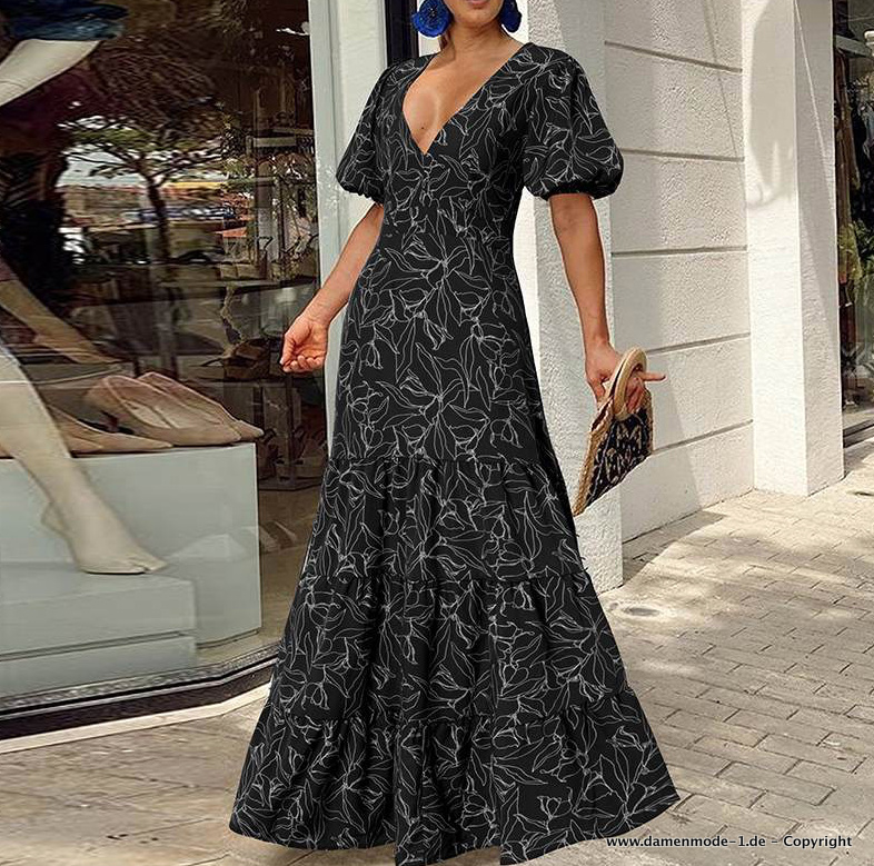 A Linie Print Kleid mit Puffärmel Elegant in Schwarz