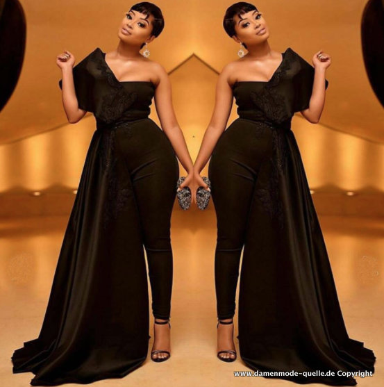 One Shoulder Abend Jumpsuit Overall Elegant in Schwarz