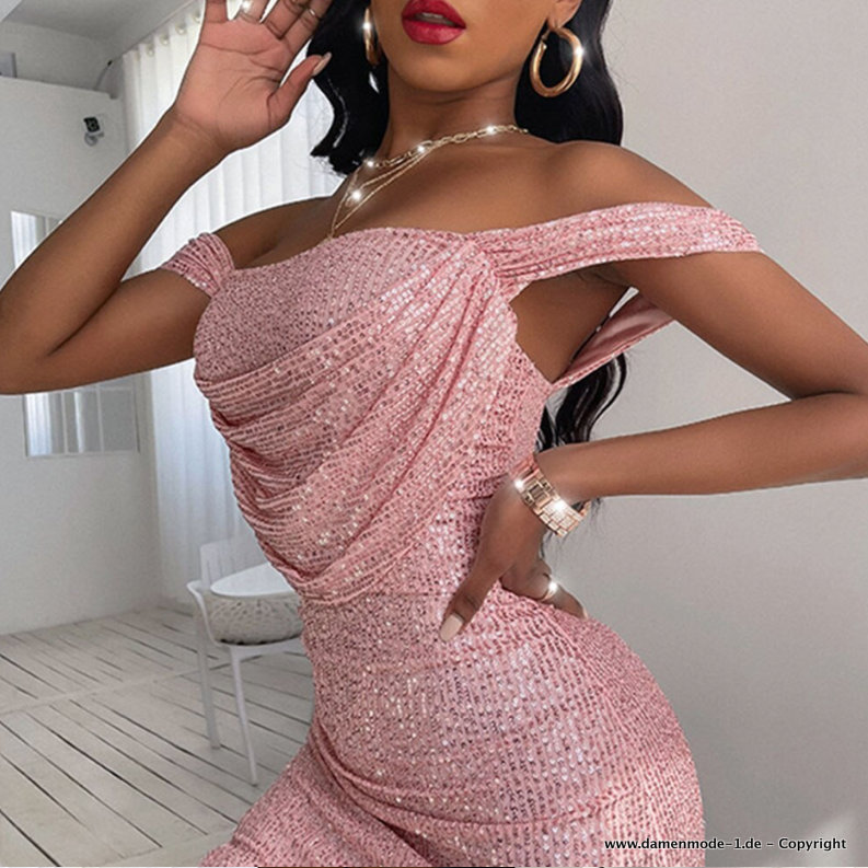 Schulterfreies Bodycon Minikleid Elegant in Rosa mit Pailletten