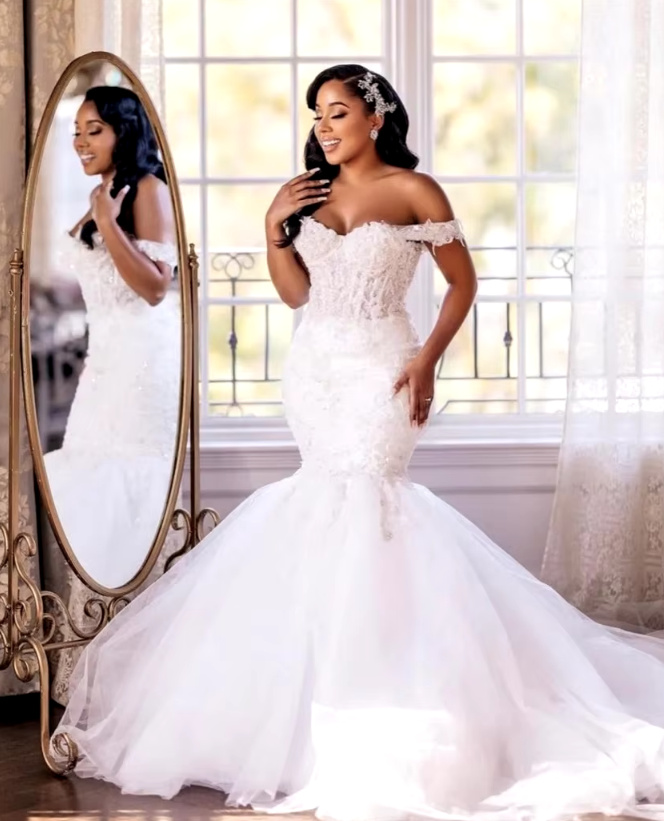 Schulterfreies Meerjungfrau Brautkleid Chantal mit Spitze