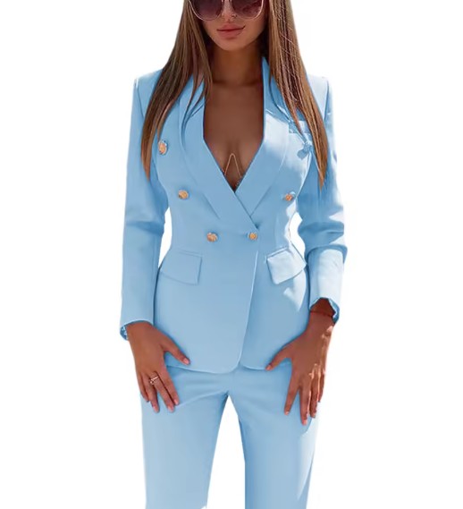 Damen Hosenanzug Frida mit Goldenen Knöpfen in Hellblau