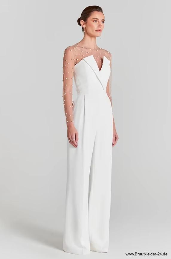 Civil ceremony bridal jumpsuit Frederike with mesh pearl appliqués