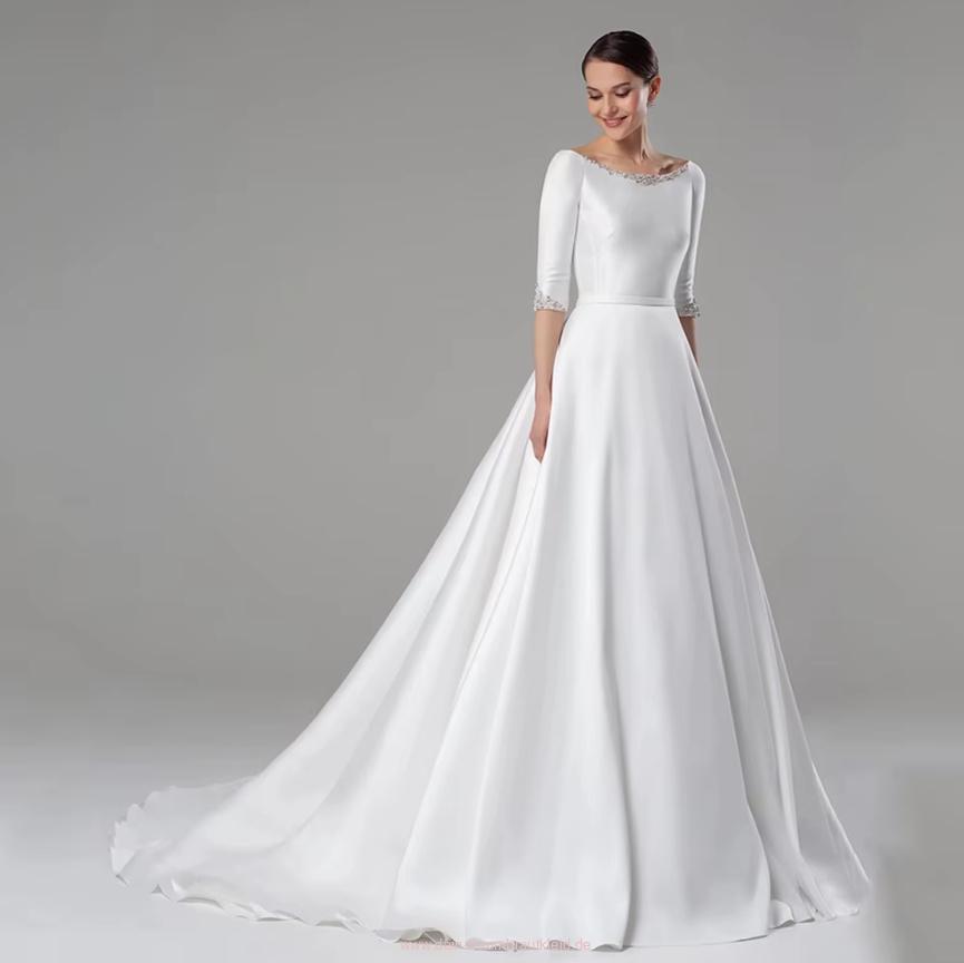 A Linie Clean Chic Brautkleid Finette mit Ärmel und Schleppe