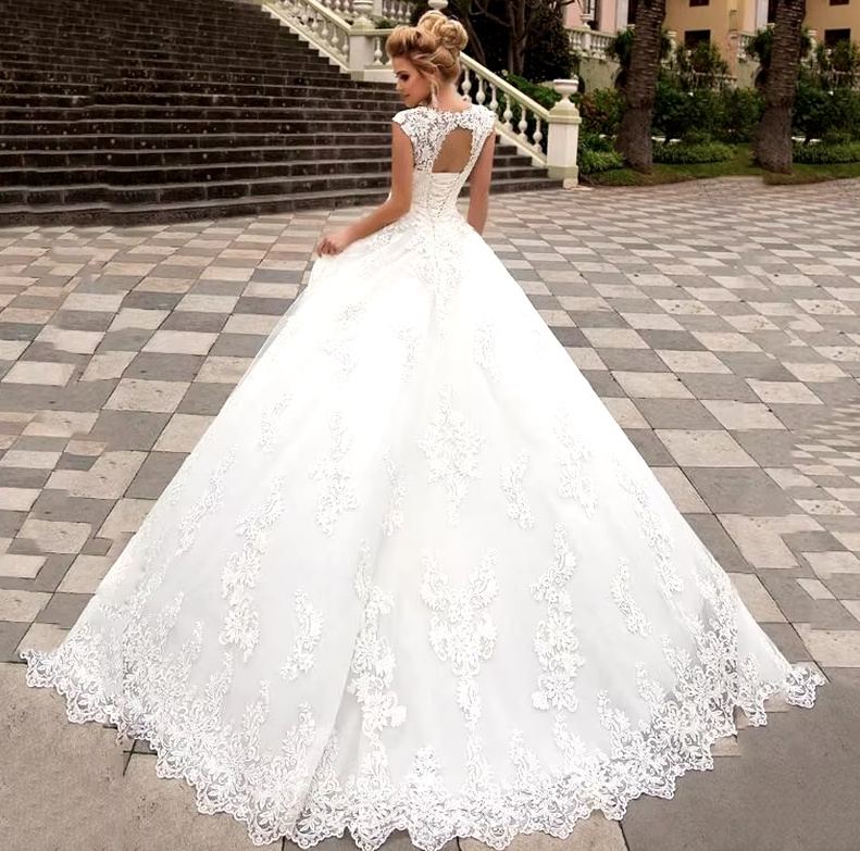 Klassisches Brautkleid Chandra mit V Ausschnitt und Spitzen Applikationen