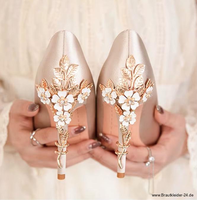 Luxus Blumen High Heels Hochzeitsschuhe Fibi Champagne
