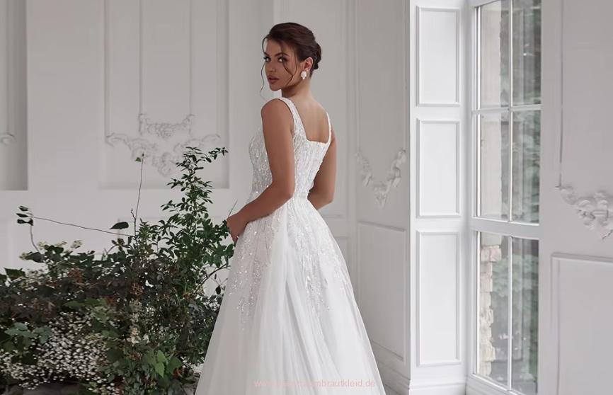 A Linie Brautkleid Felizitas mit Sexy Schlitz und Glitzer Perlen Paillettten